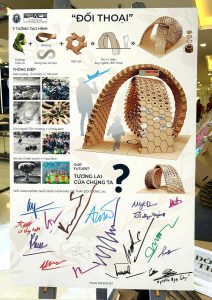 Đội Fes Nội thất HOU 2025 đã để lại dấu ấn đặc biệt với tác phẩm “ĐỐI THOẠI” – Một thiết kế mang đậm hơi thở sáng tạo và tư duy nghệ thuật hiện đại. Không chỉ nối bật với đường nét tinh tế và bố cục ấn tượng, “Đối thoại” còn chạm đến cảm xúc người xem, lan toả thông điệp sâu sắc về sự kết nối Môi trường – Con người – Xã hội. Tác phẩm không những nhận được nhiều sự khen ngợi từ Ban tổ chức , gây ấn tượng mạnh với các đội bạn mà còn thu hút sự yêu thích nồng nhiệt từ khán giả.